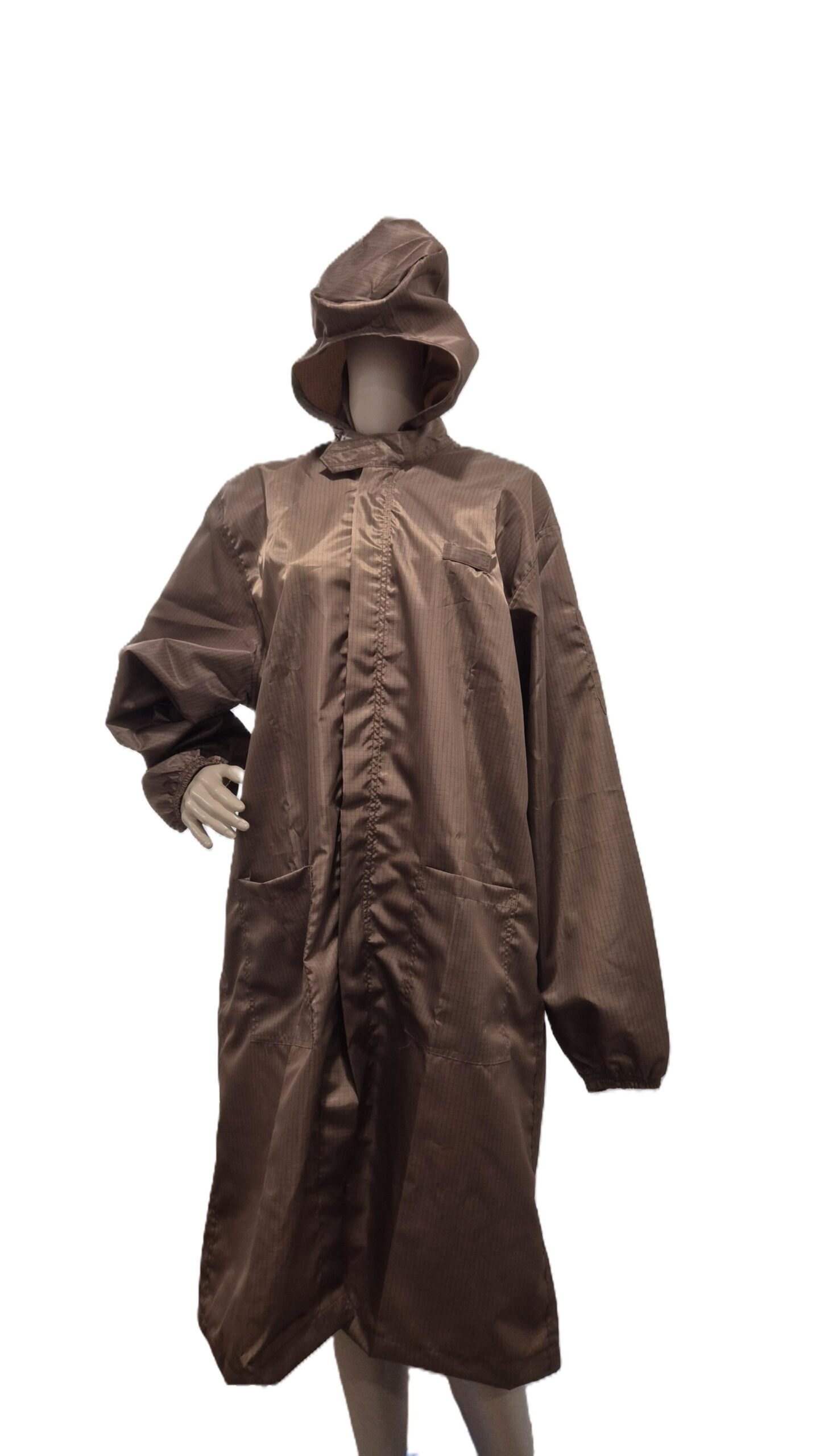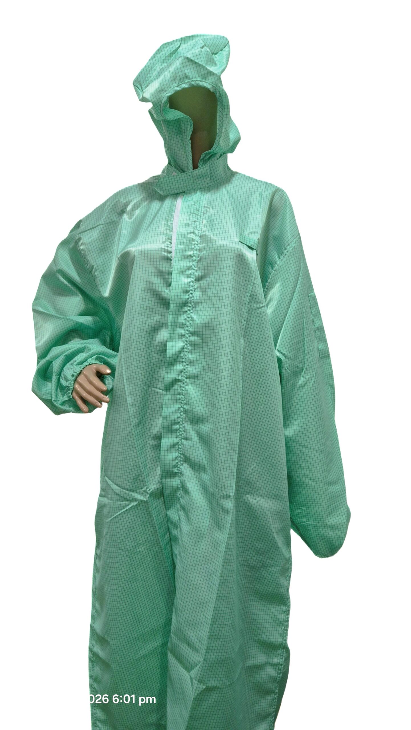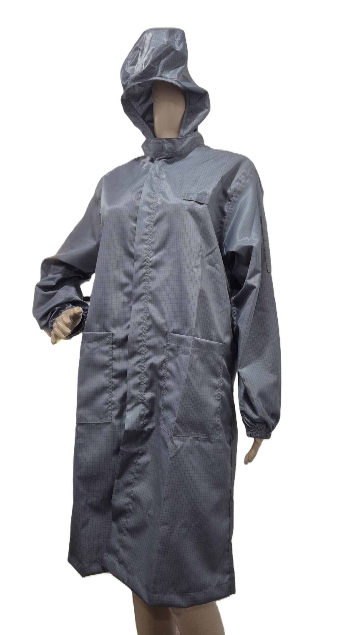 Cleanroom Esd Smock with hood attached is designed to protect sensitive electronic components from electrostatic discharge. This smock made with anti-static fabric and conductive carbon grid or stripe line. Is safely dissipates static electricity generated by the human body.