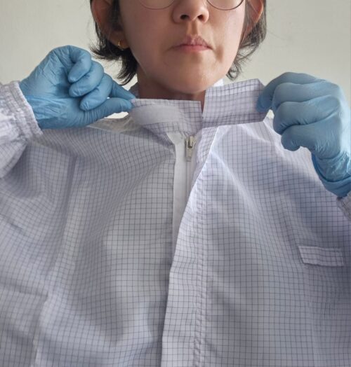 Furthermore, the cleanroom esd smock is ideal for worker in electronics manufacturing, semiconductor industries, inspection line, pharmaceutical and laboratory. Its dustproof and durable fabric maintains consistent performance even after multiple washes, ensuring long-term use and cost efficiency.